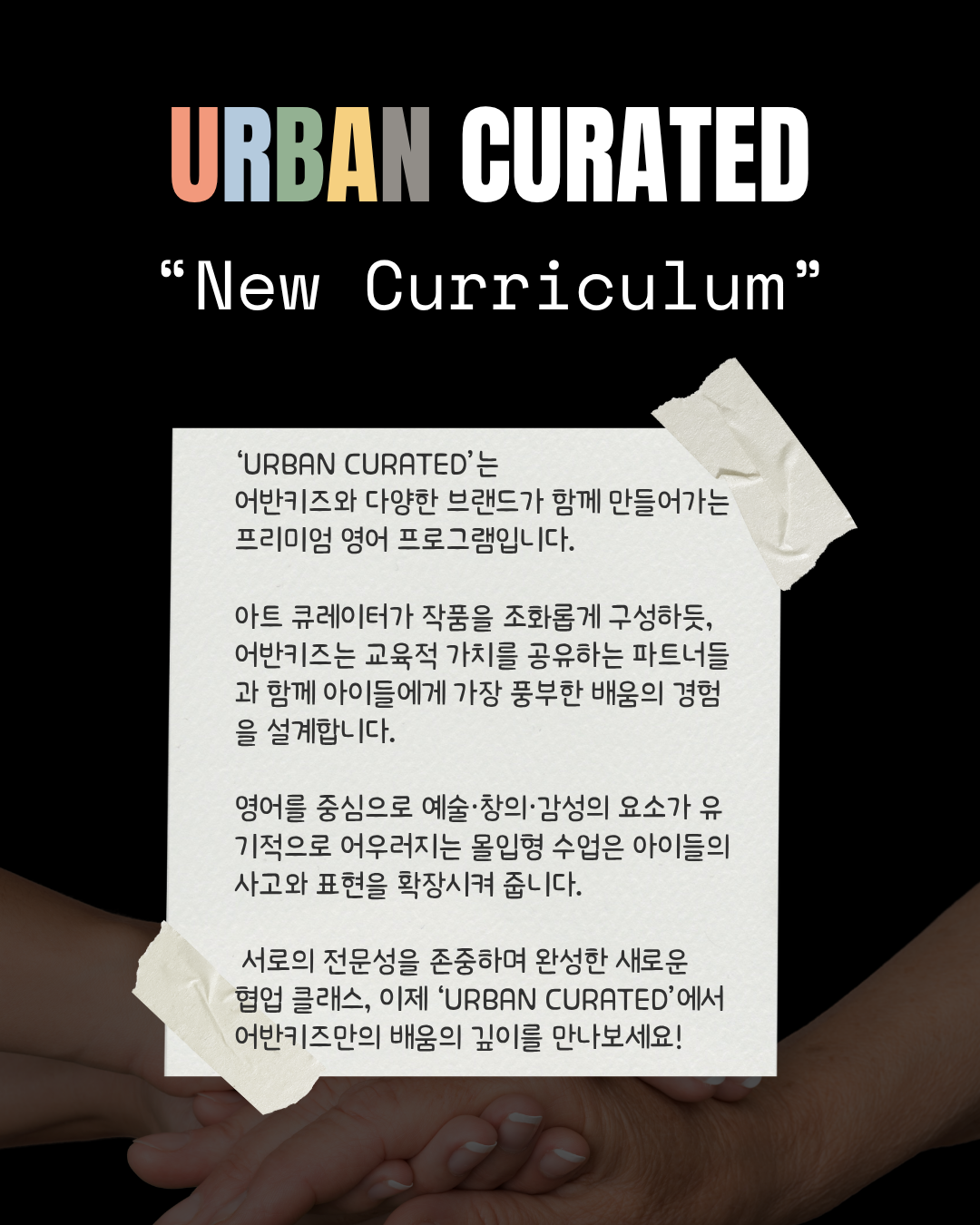 Urban Kids만의 특별한 콜라보 프로그램으로, 외부 전문 기관이나 브랜드와 함께 평소와 다른 색다른 주제와 활동을 경험하며 아이들에게 영감과 배움을 선사하는 프로그램입니다.
